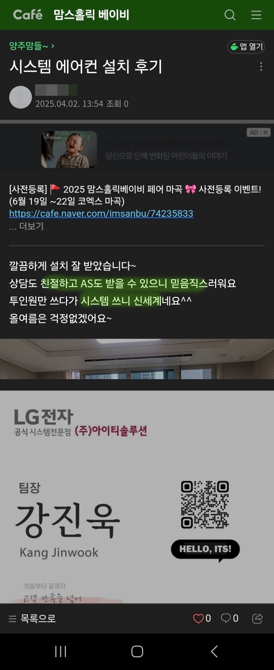 시스템 에어컨과 기분 좋고 시원한 여름 보내시길 바랍니다.♡