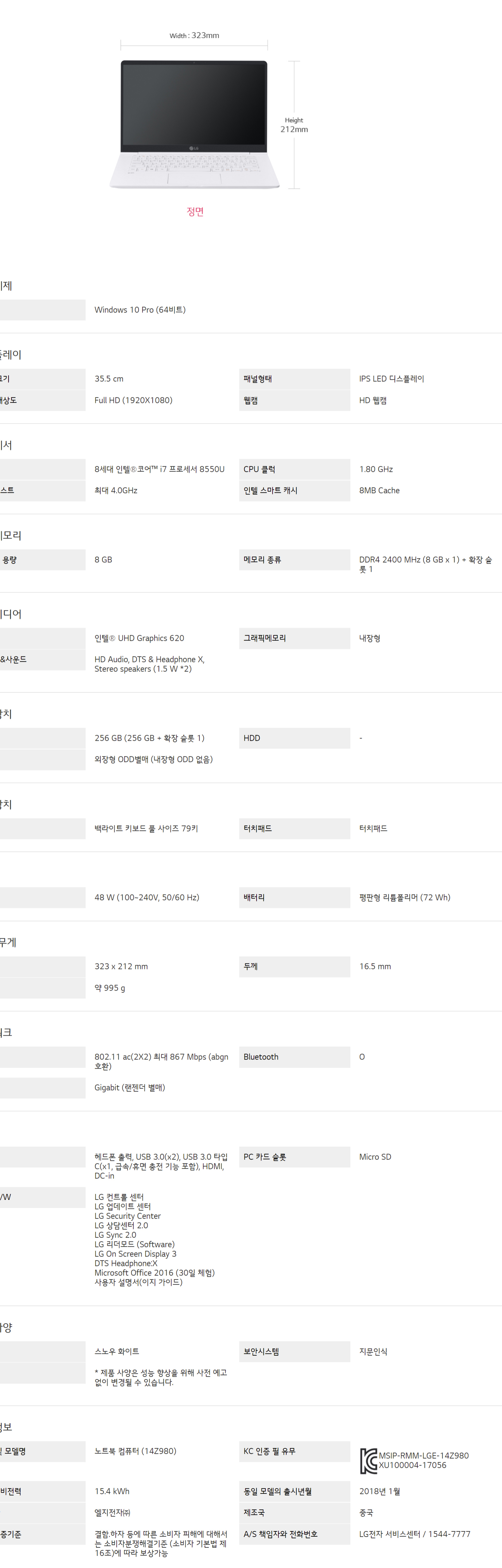 - 프로세서 : 8세대 인텔®코어™ i7 프로세서 8550U 1.80 GHz