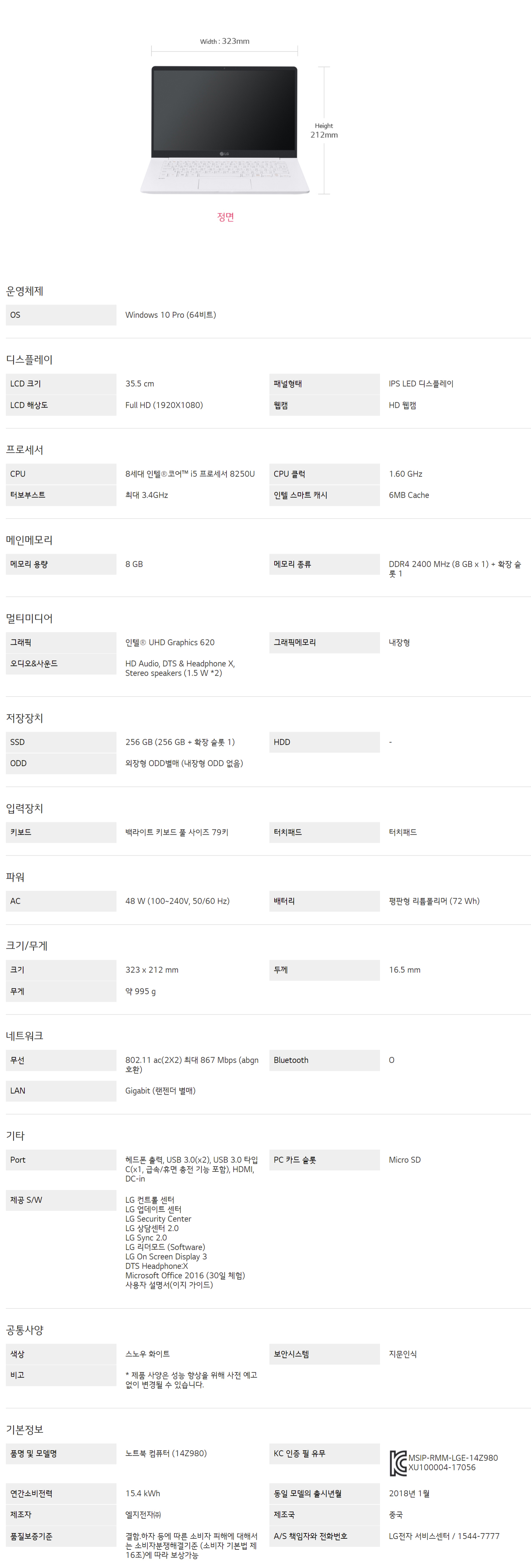 - 프로세서 : 8세대 인텔®코어™ i5 프로세서 8250U 1.60 GHz