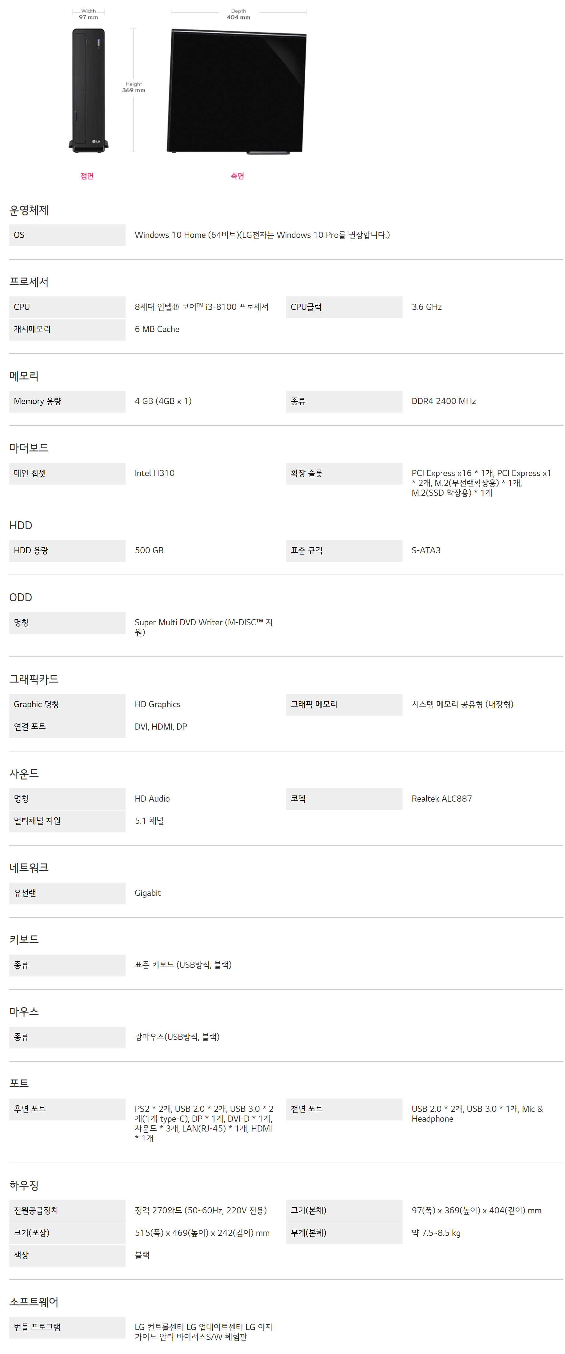• 프로세서 : 8세대 인텔® 코어™ i3-8100 프로세서 3.6 GHz
