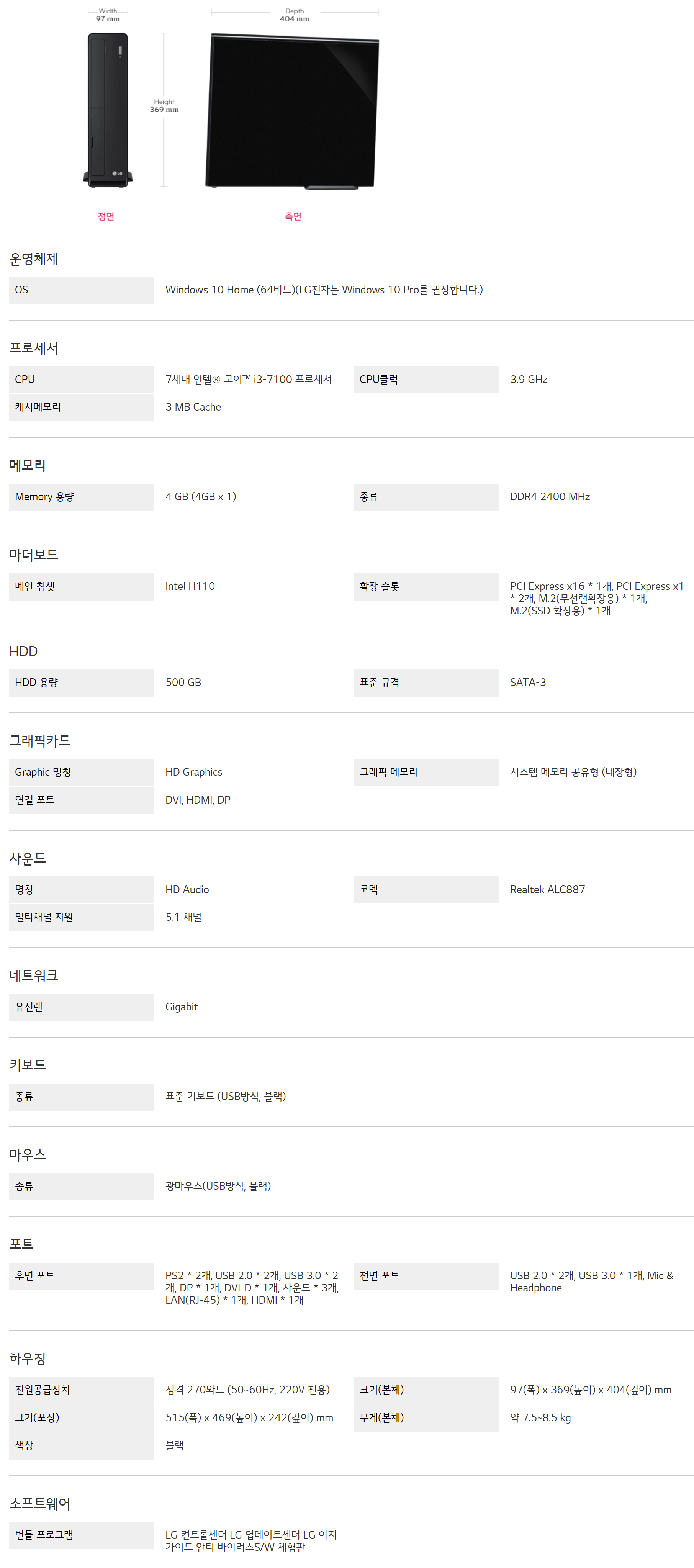 • 프로세서 : 7세대 인텔® 코어™ i3-7100 프로세서 3.9 GHz