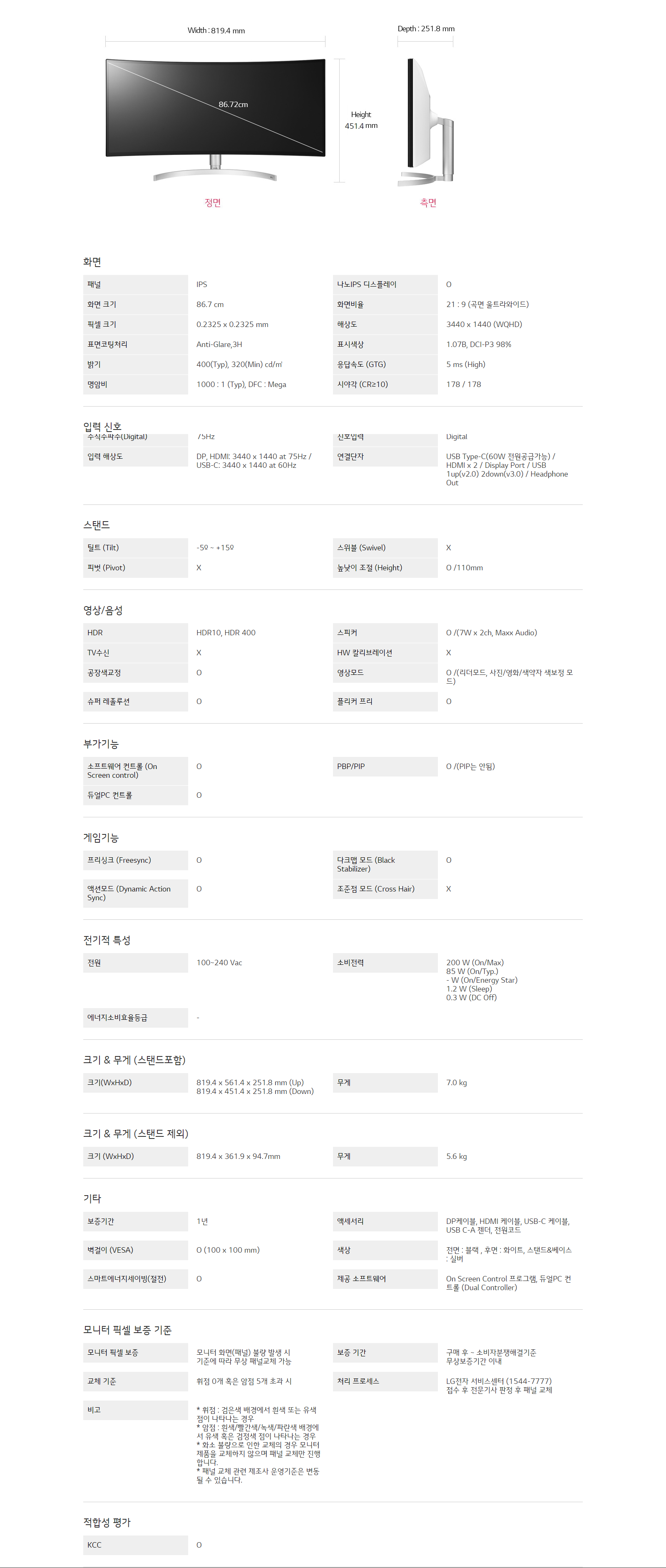 LG전자 곡면 울트라와이드 모니터 34WK95C