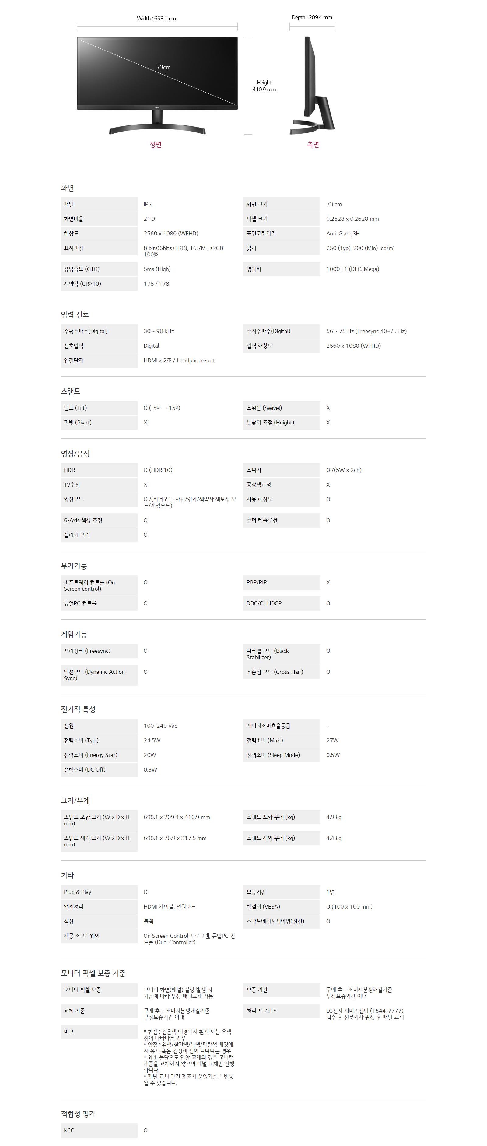 LG전자 울트라와이드 모니터 29WL50S