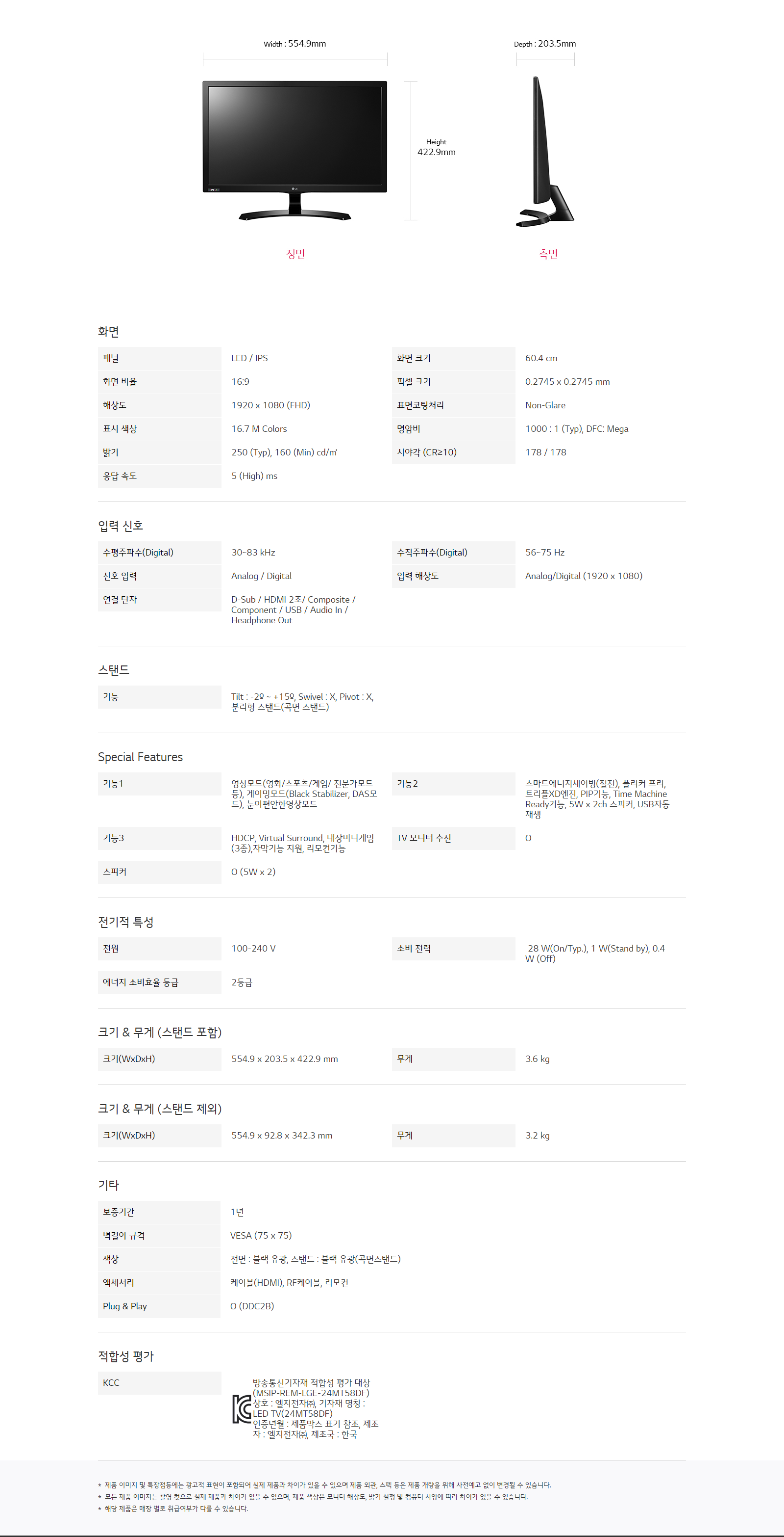 LG전자 TV 모니터 24MT58DF