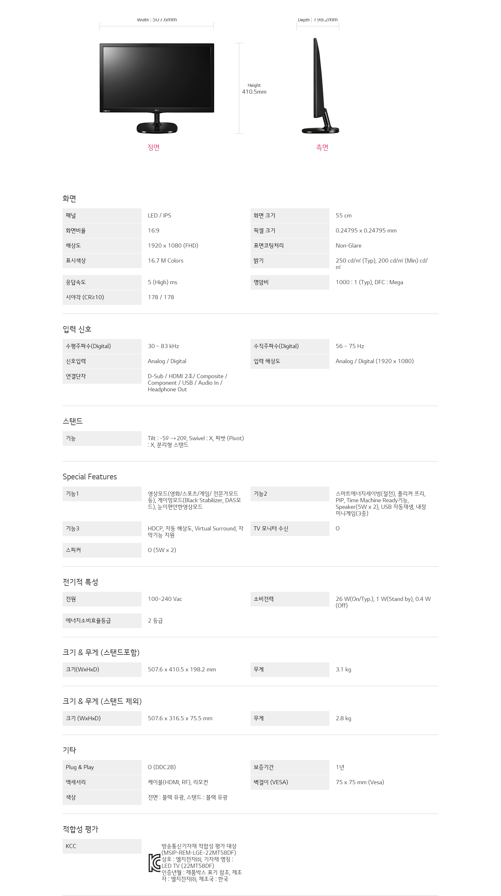LG전자 TV 모니터 22MT58DF