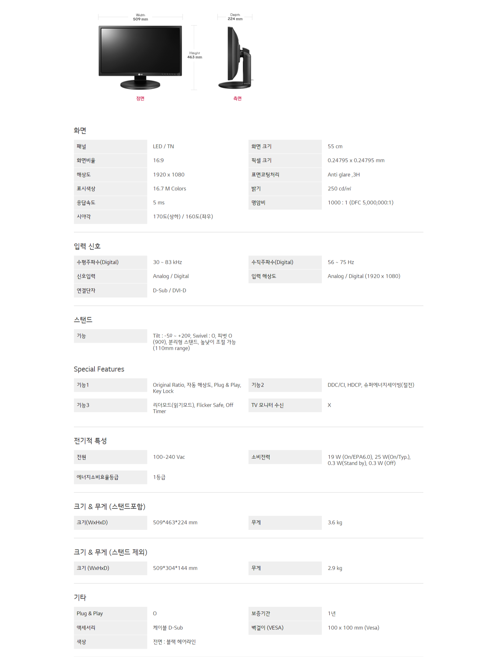 LG전자 LED 모니터 22MB35PH