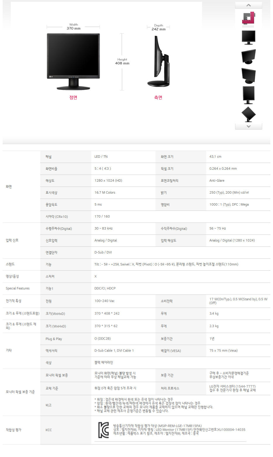 LG전자 LED 모니터 17MB15P
