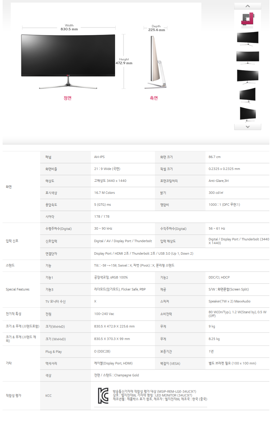 LG전자 곡면 울트라와이드 모니터 34UC97