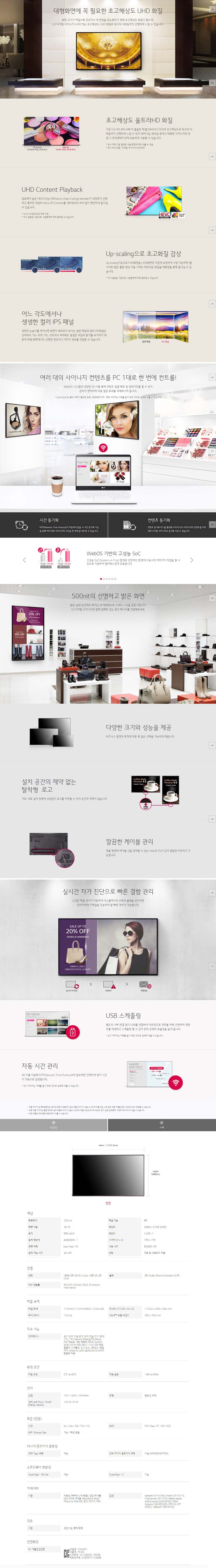 LG전자 DID 벽걸이형 광고모니터 49UH5E