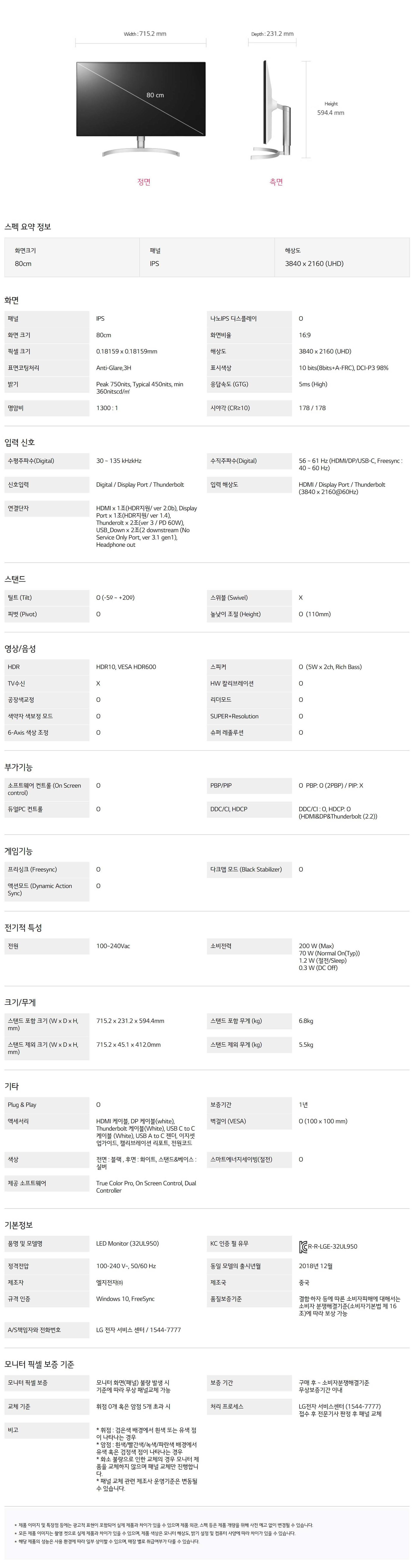 LG전자 울트라HD 모니터 32UL950