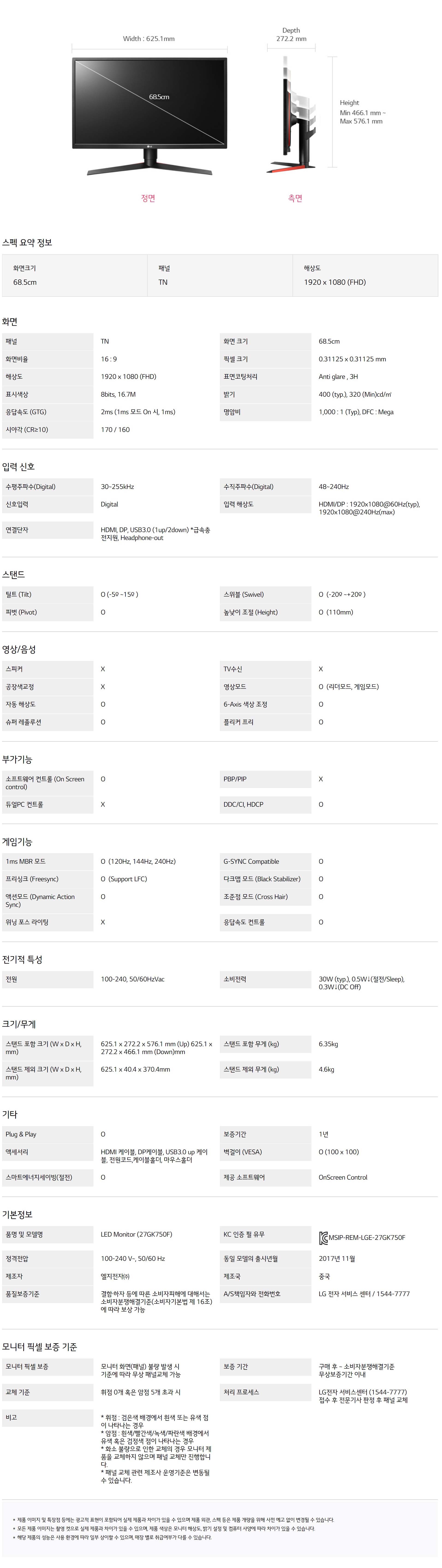 LG전자 울트라기어 게이밍모니터 27GK750F